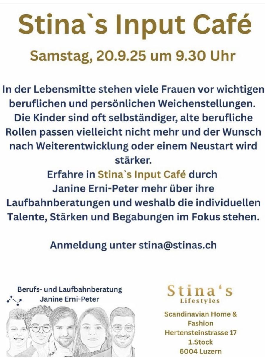 Ich freue mich sehr, Euch zur Premiere von meiner neuen Event-Reihe Stina's Input Café einzuladen…
